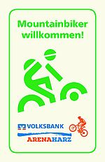 Mit diesem Schild findest du in über 20 Harz-Orten zu mountainbike-freundlichen Gastgebern, die wissen, was du bei deinen Touren brauchst: zum Beispiel viele Vitamine und Kohlehydrate zum Frühstück, Lunchpakete oder noch eine zusätzliche Wasserflasche. Auch unter den Gastgebern gibt es übrigens leidenschaftliche Mountainbike-Fans - da kann es dir passieren, dass der Wirt dich mitnimmt auf seine ganz persönliche Lieblingstour!